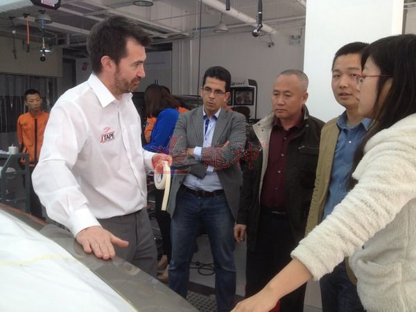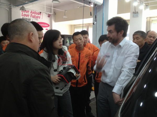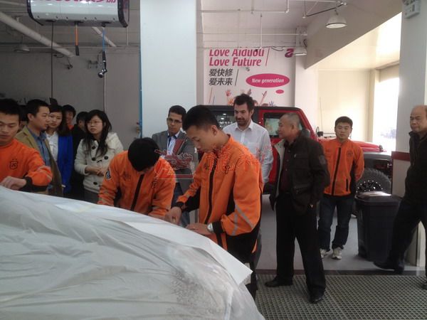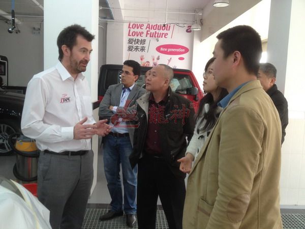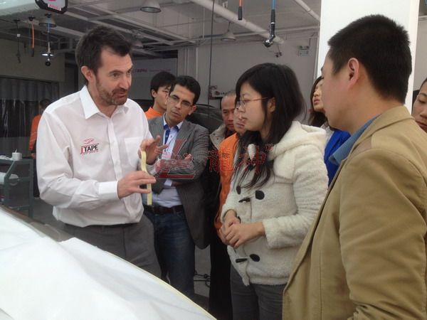 2013年特邀國外專家赴北京車爵士演示車縫泡膠條的使用 本司訊:2013年4月北京晴空萬里,龍神公司特邀英國專家一行五人,來到了北京車爵士進行汽車噴涂遮蔽技術交流。首先公司一行了解車爵士的汽車噴涂情況及詢問了使用的遮蔽工具情況。隨后英國專家針對在汽車噴漆時難噴涂的車門縫隙、玻璃死角等地方的專業遮蔽工具的演示。車縫泡沫膠:用于車身所有縫隙的遮蔽,有效隔離及遮蔽漆霧噴入車縫里。 2013-04-08 12168