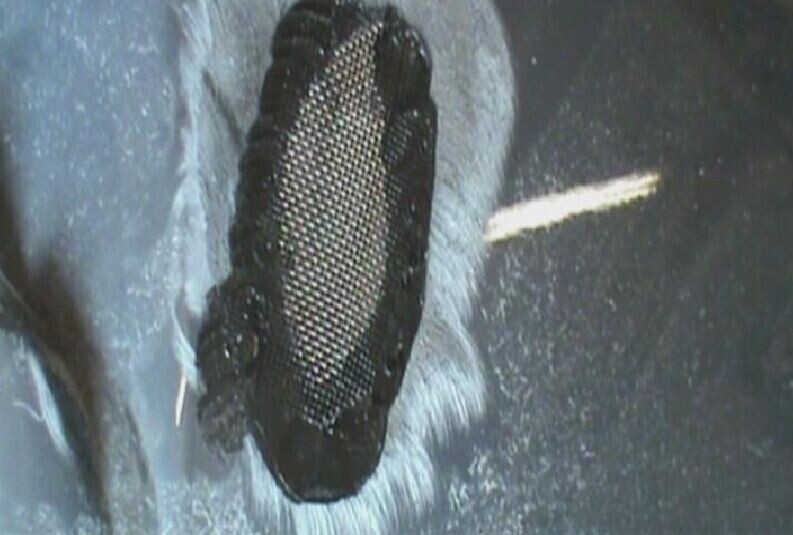 步驟7:對熔植的無銹加固網(wǎng)周圍進行簡單的打磨,以增強其表面的附著力,便于后續(xù)進行玻纖膠條覆蓋的操作,如圖1-7所示。