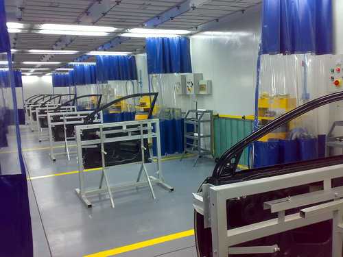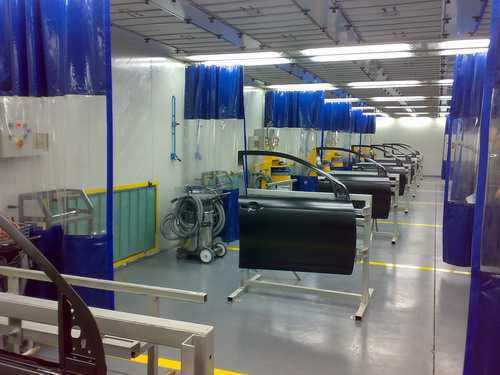 雙向鈑噴架、切紙架、無塵干磨系統、壓縮空氣供氣管路等等